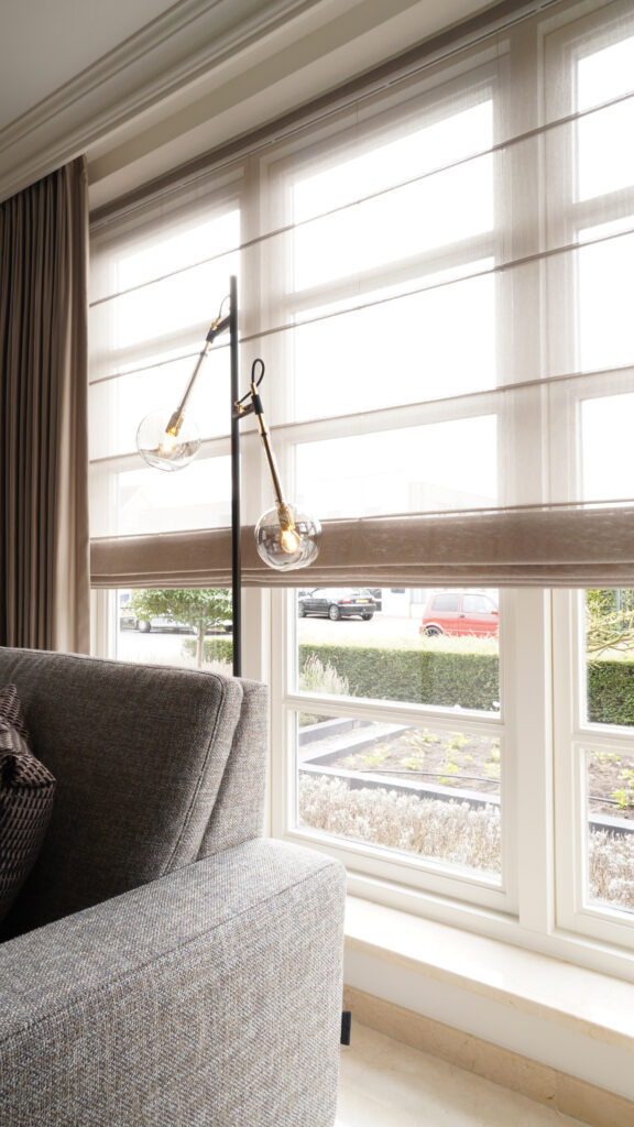 De vouwgordijnen worden geconfectioneerd in ons eigen atelier.